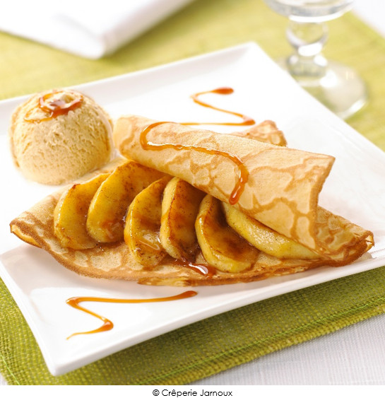Astuce Crêperie Jarnoux : pour épatez vos convives, n'hésitez pas à rajouter une boule de glace et nappez d'un coulis de caramel au beurre salé.