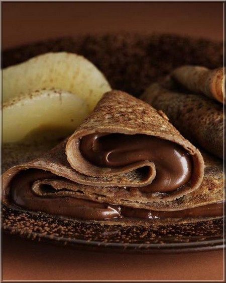 Crêpes Légères au Chocolat Noisette sur Coulis de Poire Gingembre