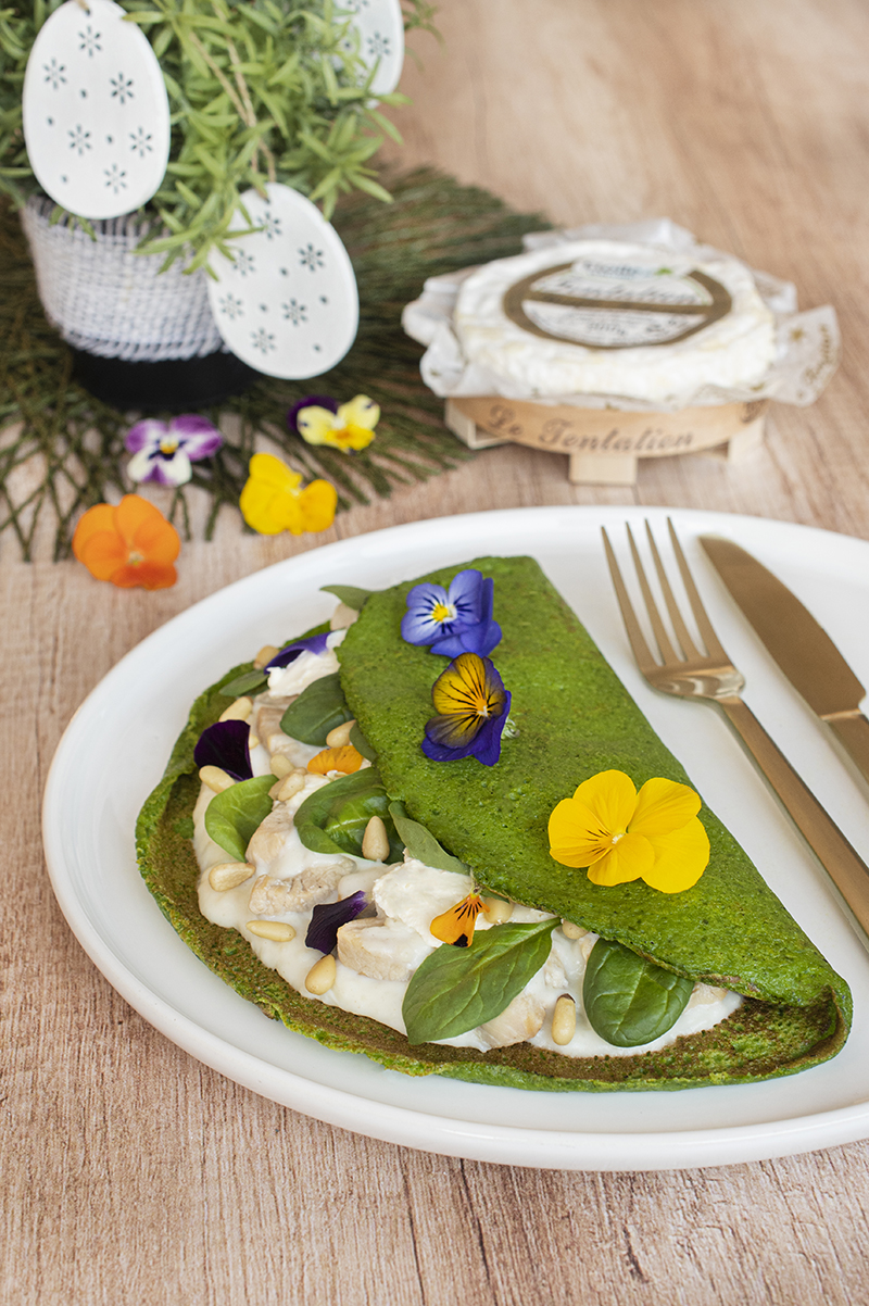 Crêpes vertes au poulet, sauce Tentation de Saint-Félicien