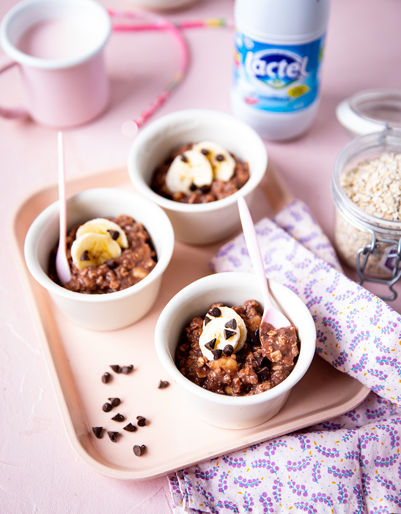 Ce porridge est le petit déjeuner idéal pour la croissance des enfants. La banane est le fruit le plus riche en magnésium, tandis que le chocolat apporte du magnésium et du potassium et le lait du calcium. L’avoine dispose de son côté de fortes concentrations en phosphore. Ces différents minéraux, indispensables à la croissance musculaire, sont assimilés grâce à l’action de la vitamine D contenue dans le lait demi-écrémé Lactel Classique riche en vitamine D. Tous les ingrédients sont ainsi réunis pour favoriser une croissance optimale.