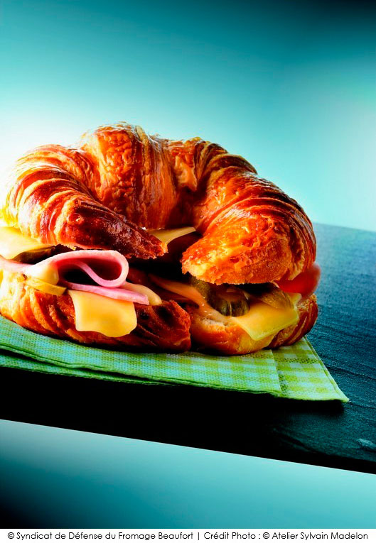3• Recouvrir avec la partie supérieure de croissant et parsemer de lamelles de Beaufort.