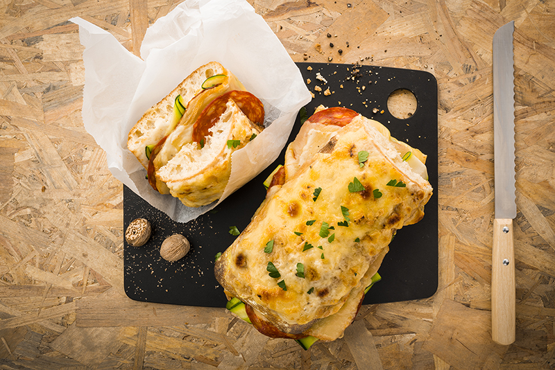 Croque ciabatta aux courgettes & au chorizo