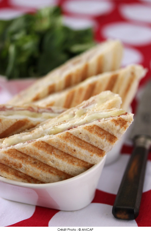 ④• Faire chauffer un appareil à croque-monsieur et y disposer les sandwiches.