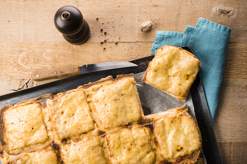 Conseil/Astuce : n’hésitez pas à recouper certaines tranches de pain pour qu’elles recouvrent bien à plat toute la plaque du four et qu’il n’y ait pas d’espace entre elles.