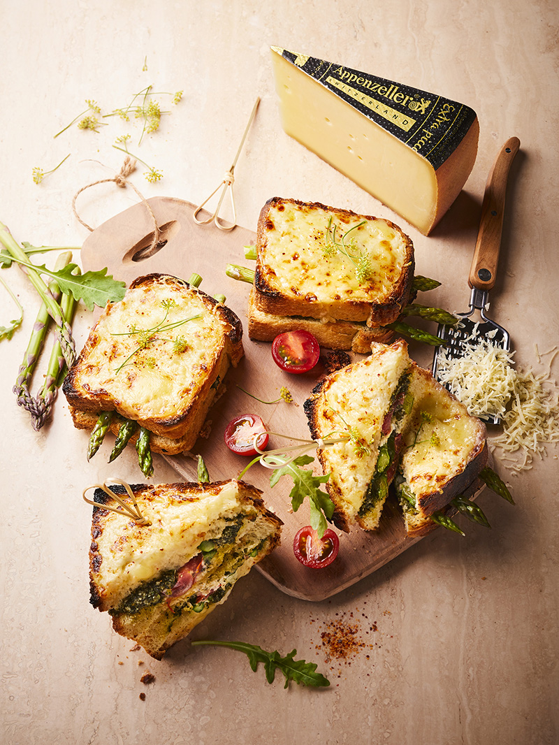 Le croque-monsieur, ce grand classique traditionnel des brasseries françaises, a toujours séduit les « food addicts ». Cet intemporel se met à l’heure Suisse original en s’associant à l’Appenzeller® qui lui aporte harmonie et caractère. le plus corsé des fromages de Suisse a challengé Bastien Petit pour imaginer une déclinaison inédite de croque-monsieurs qui feront fondre.