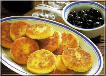 4.Couper des ronds dans la crème, les rouler dans la chapelure et les faire frire dans un bain de friture très chaud.