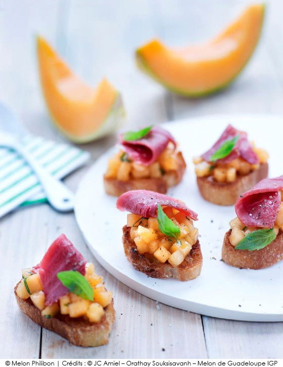 Crostini de melon de Guadeloupe IGP au magret de canard
