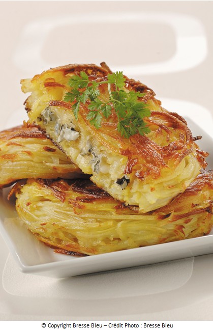 3• Disposer au centre de la galette des fines tranches de Bresse Bleu.