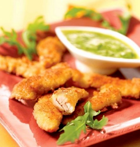 7- Faire chauffer le reste d’huile d’olive dans une poêle et laisser dorer les lanières de poulet.