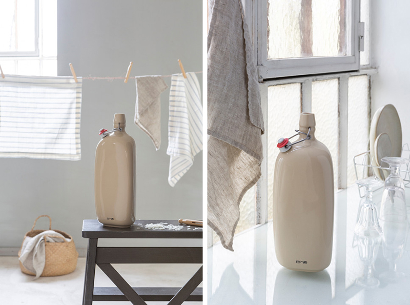 Rezo a choisi le grès pour faire fabriquer son cruchon aussi pratique pour servir de l’eau, du vin ou des jus à table, que pour stocker avec style sa lessive.