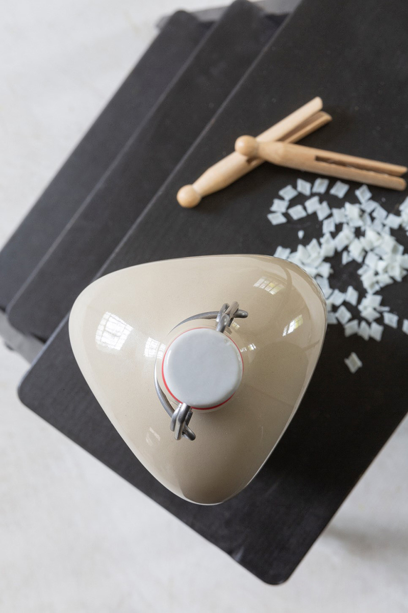 Ce cruchon mêlant tradition et modernité est réalisé à partir d'un moule centenaire, avec la volonté de redonner forme à l'originalité de son format. Il est en grès naturel émaillé. Sa fermeture mécanique, comme un limonadier, Avec sa forme originale, c’est un objet décoratif qui met en valeur la qualité du "fait main".
