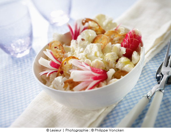 Le jambon pourra être remplacé par de jolis radis taillés en forme de fleurs, qui s’ouvriront dans un saladier sous un filet d’eau froide.