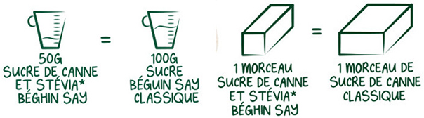 Sucrez 2 fois moins pour le même plaisir avec Béghin Say Sucre & Stévia* !