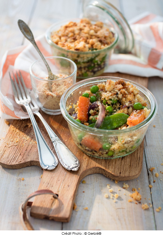 Suggestion : Juste avant de servir votre crumble vous pouvez saupoudrez le crumble de germe de blé Gerblé®