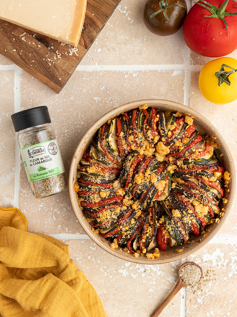 Au printemps on a tous envie de soleil. Pourquoi ne pas tenter de faire venir les beaux jours avec un délicieux crumble de tian de légumes en forme de soleil ? Facile à réaliser, magnifique à regarder et succulent à déguster, il ravira toute la tablée !