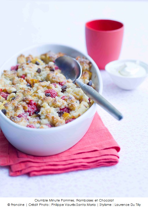 Crumble Minute Pommes, Framboises et Chocolat