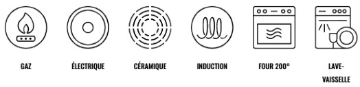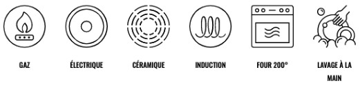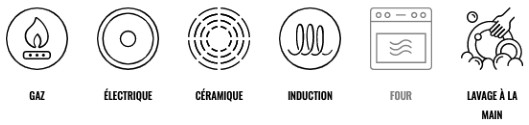 Elle a d’excellentes propriétés antiadhésives. Une petite quantité de matière grasse suffit pour cuire uniformément tous les aliments.