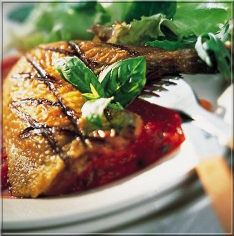 Cuisses de Pintade Grillées – Coulis de Poivrons et Basilic