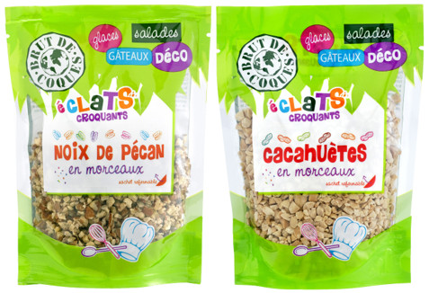 Délicatement concassées, les cacahuètes et les noix de pécan Brut de Coques apporteront saveur et croquant à toutes vos recettes, qu’elles soient salées ou sucrées.