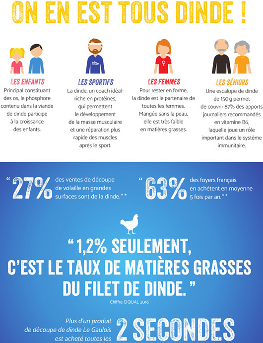 Pour beaucoup, la dinde évoque le doux parfum de l’enfance ou des dîners et des moments de fêtes. Pour d’autres, c’est une viande consommée au quotidien, ce qui est d’autant plus intéressant que c’est l’une des viandes les moins caloriques. Qu’elle qu’en soit sa finalité, elle possède des saveurs et bienfaits qui ont conquis des générations. La dinde, tout un symbole, a longtemps été une viande royale, mais qui a su s’adapter à toutes les époques et continue aujourd’hui à trôner dans nos assiettes. Le Gaulois, c’est la garantie d’une volaille 100% française qui fait cocotter de plaisir à tous les âges.