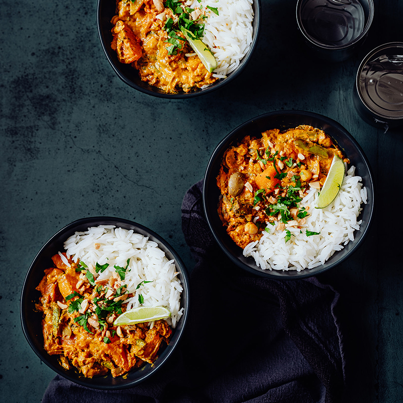 Envie d’une touche d’exotisme avec les beaux jours ? De savoureux légumes dans une sauce onctueuse et gourmande au lait de coco et au curry.