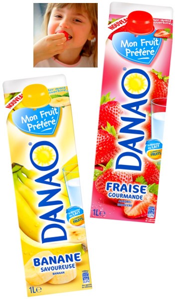 Danao® répond donc aux envies des petits en leur proposant de retrouver toute la gourmandise de leur fruit préféré, fraise ou banane, dans une délicieuse boisson lactée.