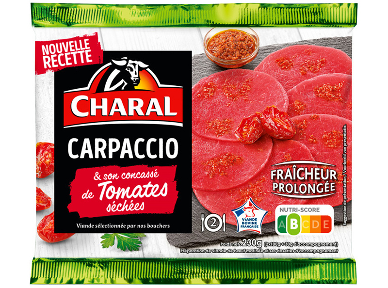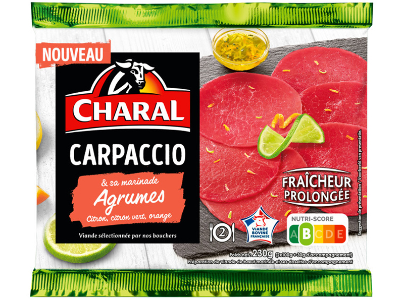 Comme chaque année, Charal invite le Carpaccio sur nos tables ensoleillées : une préparation de bœuf cru délicate, réalisée à partir d’une viande 100 % française et très finement tranchée pour un fondant inégalé. Aromatisées de différentes saveurs, les recettes de la marque jouent sur les contrastes et les assaisonnements pour régaler les amateurs de plats frais et raffinés. Déjà riche de 5 références, cette gamme s’étoffe cette année avec des agrumes et des tomates séchées.