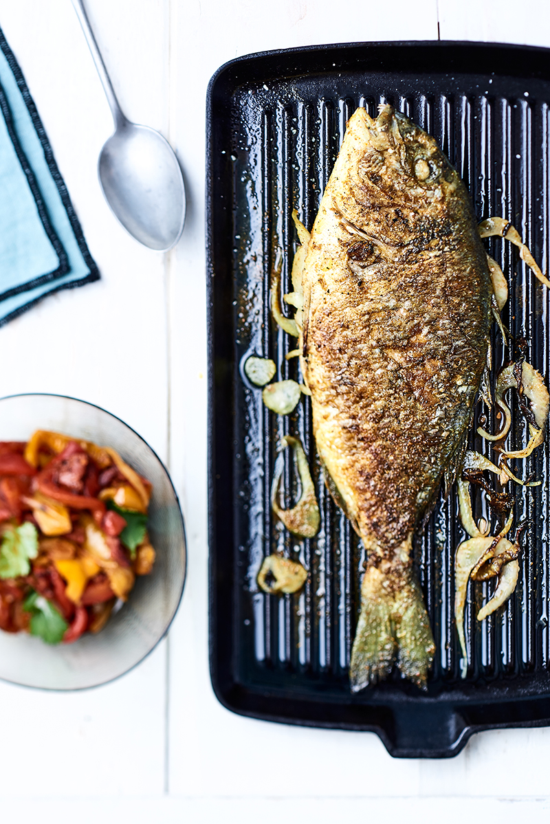 Rectifiez l’assaisonnement en poivre et en sel puis saupoudrez de coriandre ciselée avant de déguster avec les daurades.