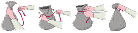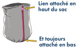 Une supériorité due à une innovation simple et inédite : le lien est attaché en haut du sac, à l'extérieur, et reste ainsi toujours à portée de main. En deux temps trois mouvements, on le retire… et le sac est fermé !
