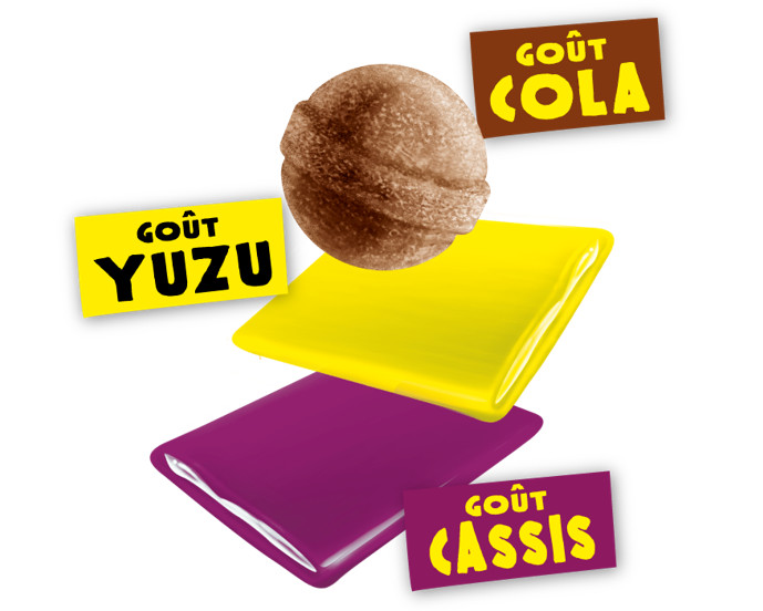 Les barres et la bille sont élaborées avec des arômes et des colorants d’origine naturelle.