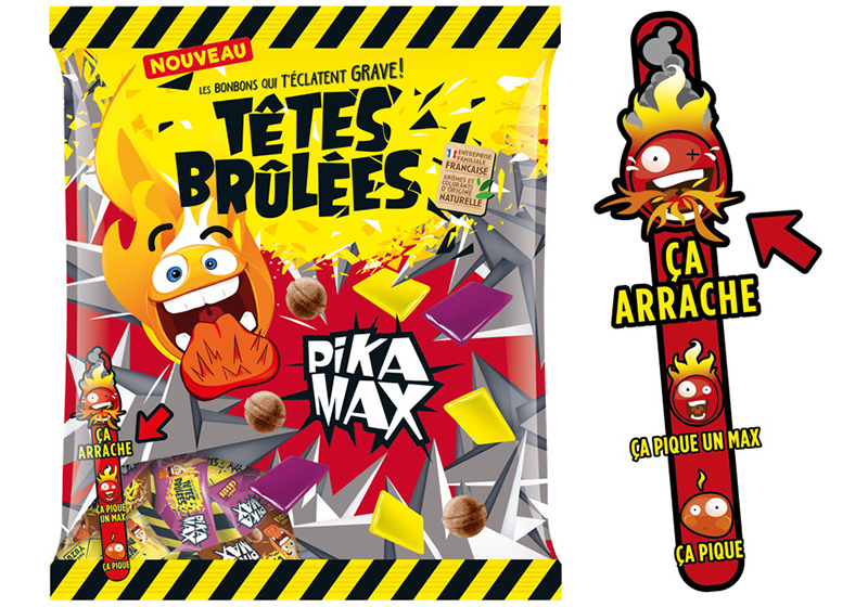 Comme toutes Les Têtes Brûlées, PIKAMAX est fabriqué en France : il propose 3 nouveaux bonbons acides aux couleurs vives, présentés dans un sachet flashy à l’encre métallisée pour ajouter encore plus de fun à la fête !