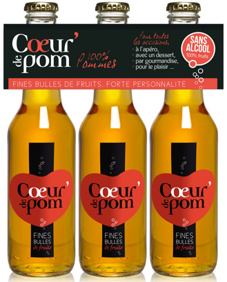 Cœur de Pom’ propose ses Fines Bulles de Fruits en petits formats de 27,5 cl. Pratiques, les petites bouteilles sont vendues par 3 en format individuel permettant ainsi une nouvelle consommation de ces jus 100% fruits, généreux en goût et en pétillance.
