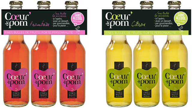 Les Fines Bulles de Fruits Cœur de Pom’ sont disponibles en parfum Pomme, et, nouveauté 2017, en déclinaison Framboise et Citron. Plus besoin de se mettre d’accord sur un seul parfum lors d’un bon moment partagé entre proches, avec les petites bouteilles Cœur de Pom’, chacun peut boire son pétillant de fruits sans alcool préféré.