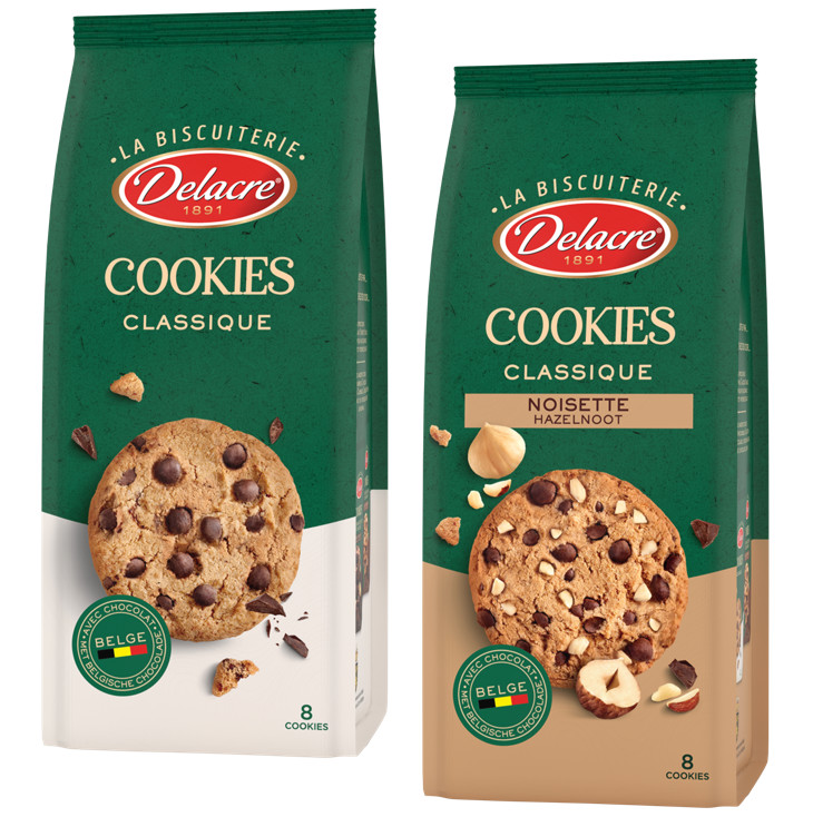 Le traditionnel cookie reste la valeur sûre pour combler les envies de chacun. Delacre réinterprète la fameuse recette aux pépites de chocolat, avec sa propre touche de raffinement, de chocolat noir belge et de beurre savoureux.