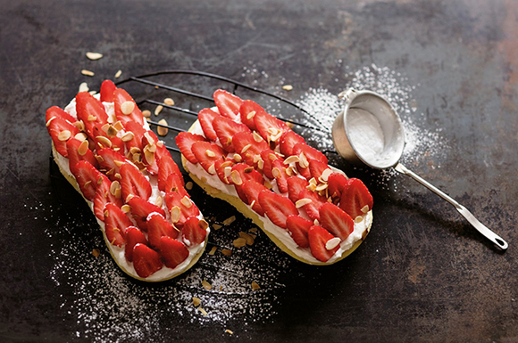 Disposez les fraises lavées, séchées, équeutées et coupées en 2.