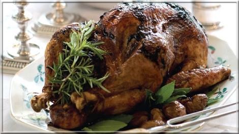 9.Faites réchauffer les marrons en suivant les indications précises sur leur conditionnement. Vous les servirez avec la dinde que vous pourrez décorer de demi-tomates cerises et de quartiers de citron confits.