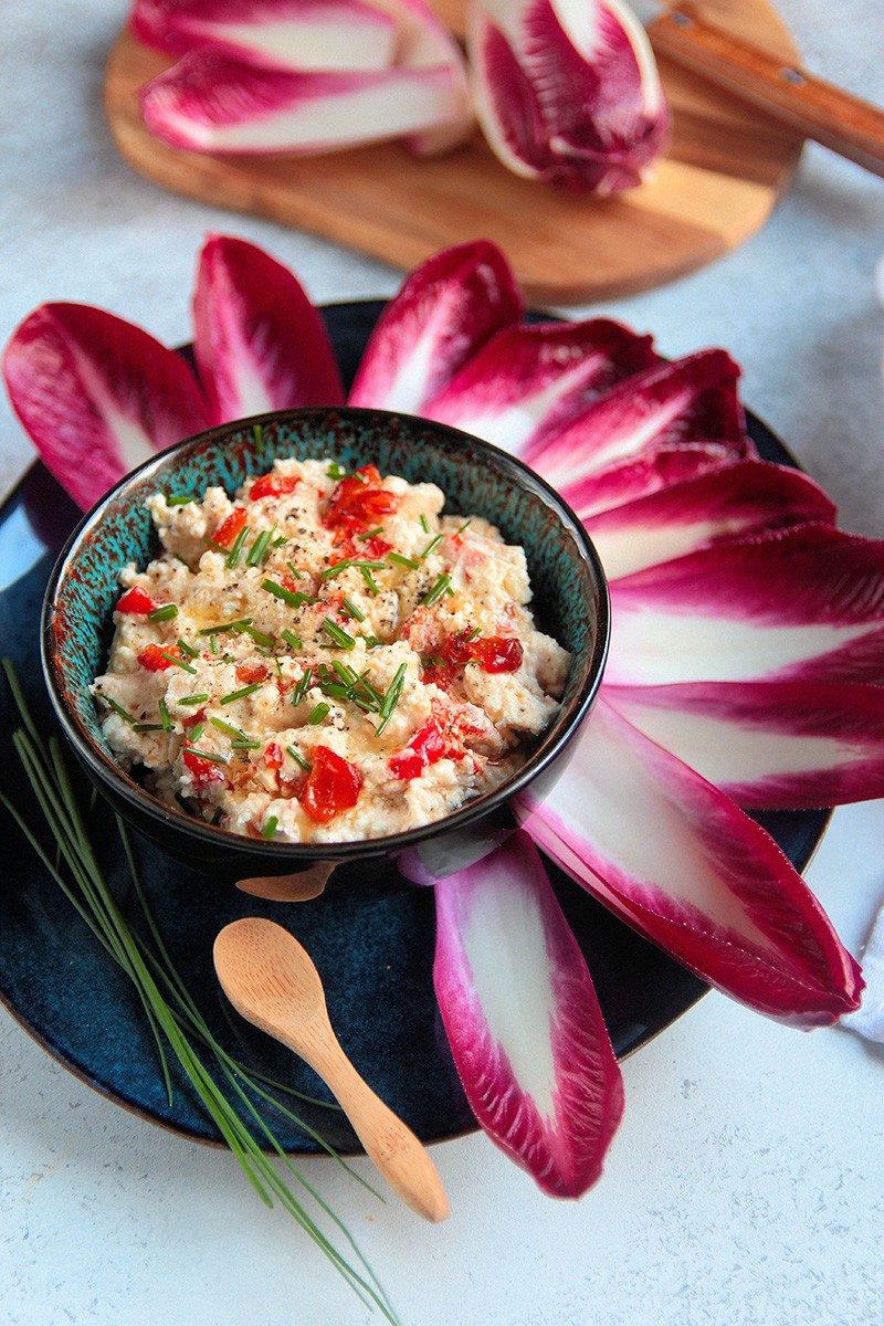 Dip d’endive au chèvre & poivron rouge