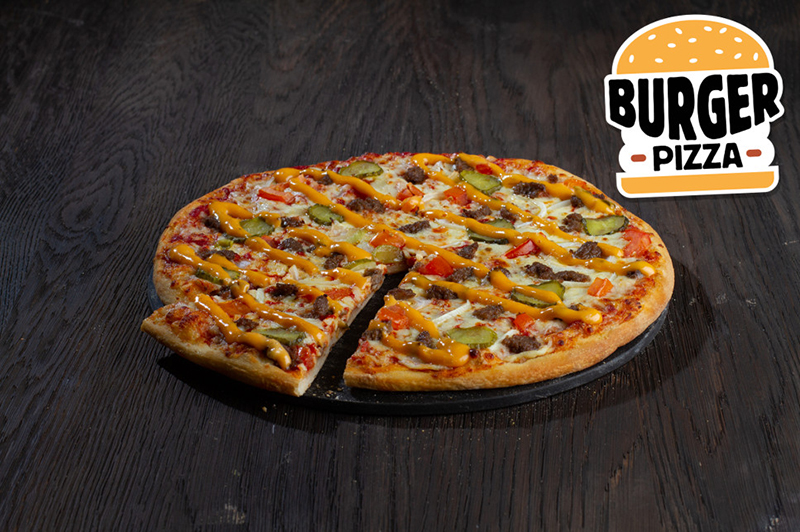Sauce tomate, mozzarella, boulettes de bœuf assaisonnées, oignons, pickles, tomates fraîches, sauce burger… L’alliance parfaite de la pizza et du burger, car parfois ne pas choisir, c’est déjà faire un choix.
