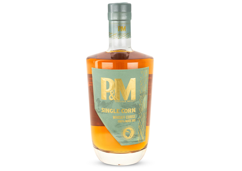 L’équipe de la distillerie a travaillé sur l’élaboration d’un whisky utilisant uniquement une matière première Corse. Elle porte son choix sur le maïs et initie, avec un agriculteur de Cervione, la culture de cette céréale, pour une production de maïs bio entièrement dédiée à la fabrication du Single Corn P&M. Facile à déguster grâce à sa rondeur en bouche et à son goût doux et vanillé, il peut se déguster aussi bien sec qu’en cocktail.