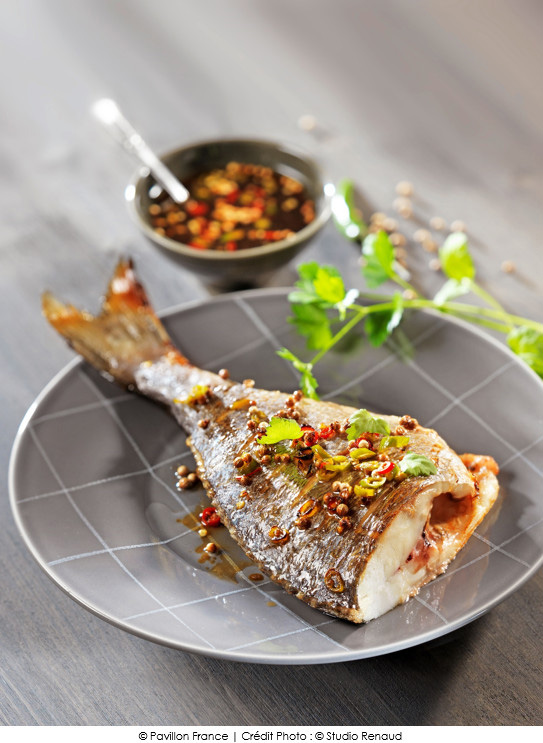PAVILLON FRANCE, les poissons doivent avoir été pêchés en mer par un navire battant pavillon français et afficher un degré de fraîcheur optimale.