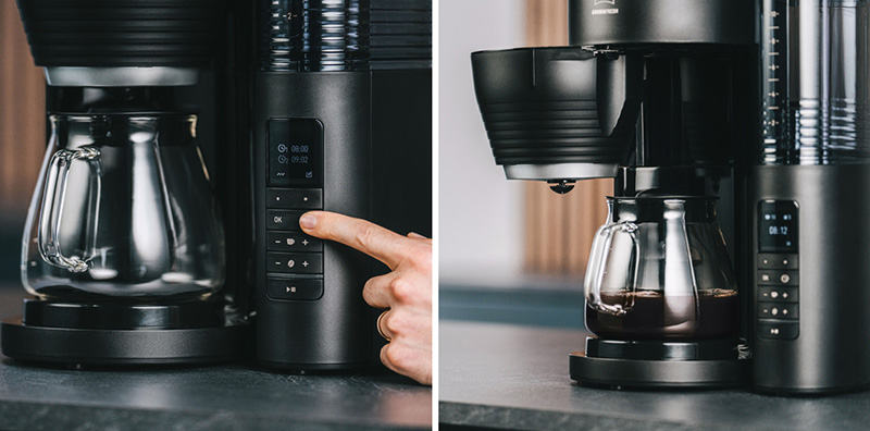 Elle dispose également de nombreux autres atouts pour faciliter son utilisation comme son écran d’affichage LCD plus grand faisant office de panneau de commande. Grâce à cette optimisation, elle offre une utilisation particulièrement intuitive et un processus de préparation à la fois simple et technologiquement avancé. La fonction Minuteur apporte un confort supplémentaire. L’AromaFresh de Melitta® fait passer la préparation du café filtre au niveau supérieur tout en jouant la carte de l’élégance. Un design soigné, des lignes épurées et un noir mat profond en font l’élément central de toutes les cuisines.
