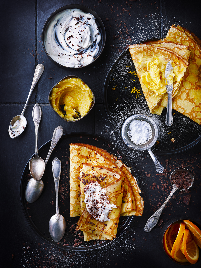 Étalez une noisette de beurre à l’orange sur des crêpes encore chaudes.