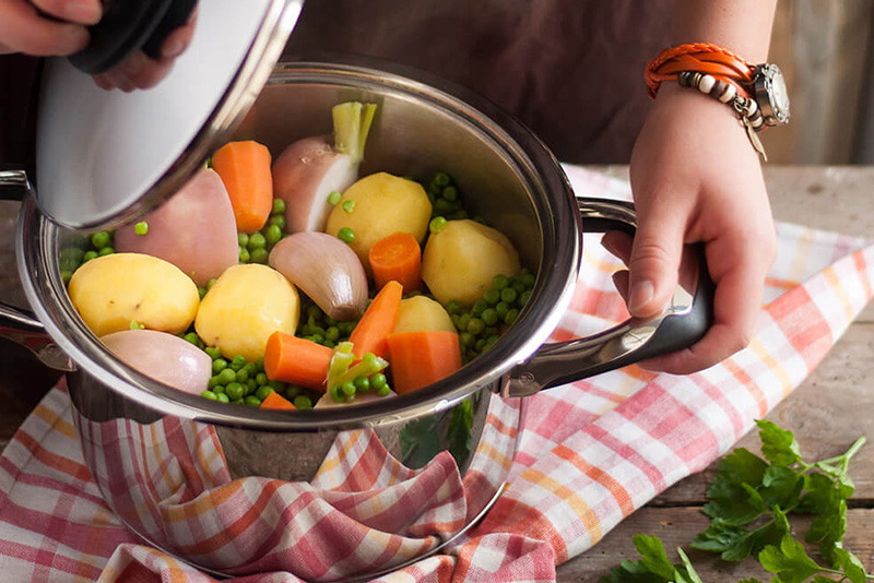 • Aucune perte de vapeur grâce à l’ajustement parfait des ustensiles, les aliments restent bien confinés pour une cuisson tout en douceur.