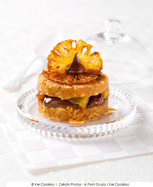 Écrasée de Palets Bretons, chocolat et ananas caramélisé
