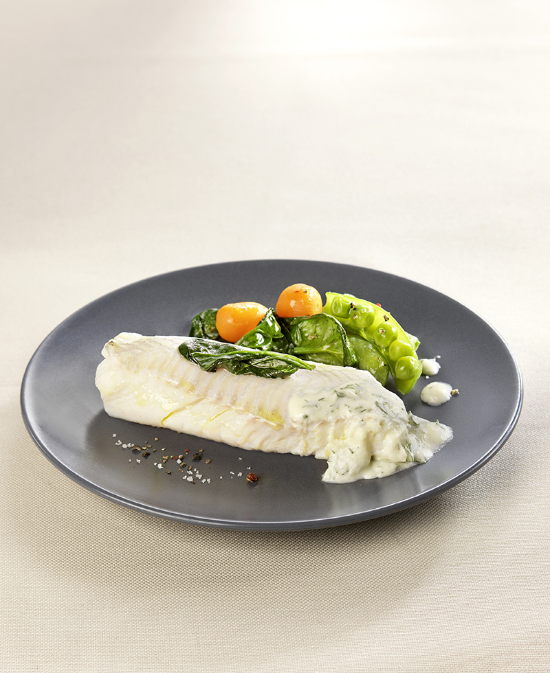 Églefin, légumes de printemps et sauce aneth