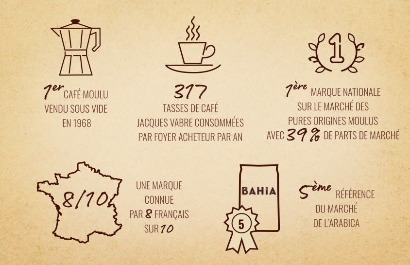 • 1968 : Création de la marque Jacques Vabre, 1ère marque de café moulu sous vide.