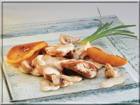 Disposer à l'assiette la préparation d'émincés de veau nappée de crème aux champignons.