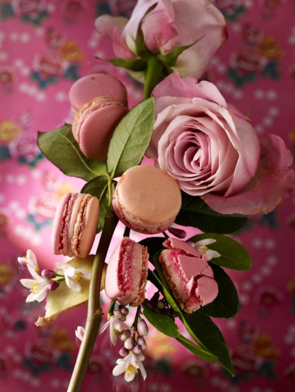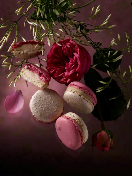 De l’évocation d’un parfum aux notes de rose et de jasmin, Joy de Patou, Jean-Michel Duriez, nez de Rochas, déclenche chez Pierre Hermé l’envie de travailler ces mêmes saveurs dans un macaron. Plus qu’un mélange, une succession de goûts. Dissociés, la crème à la rose et le cœur de crème au jasmin finissent par s’unir dans une découverte progressive. Ni tout à fait le goût de la rose, ni tout à fait le goût du jasmin. Une évidence.