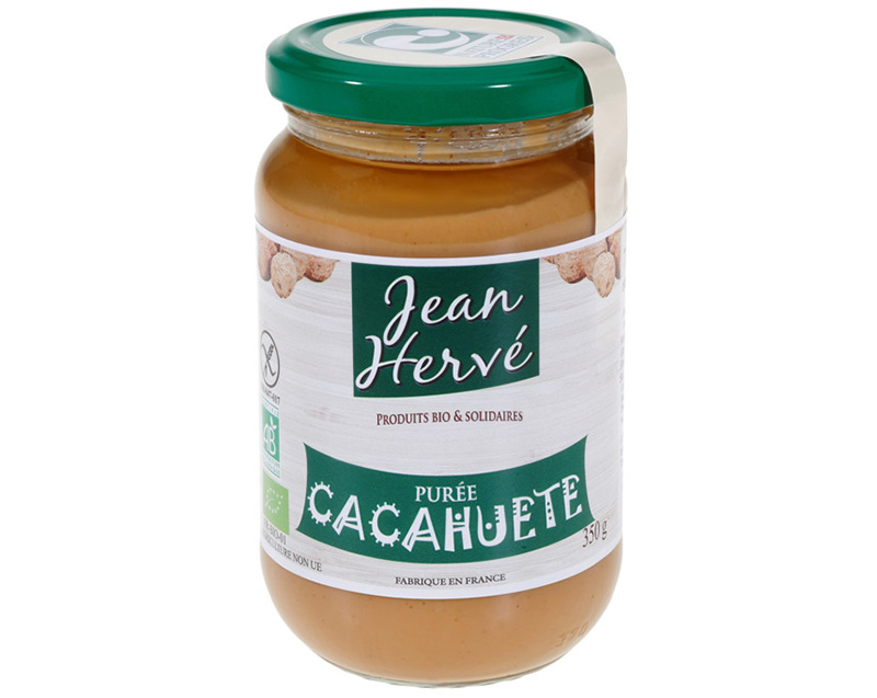 Le spécialiste des fruits secs et des purées d’oléagineux biologiques JEAN HERVÉ propose une purée de cacahuète unique composée essentiellement de cacahuètes certifiées en Agriculture Biologique. Grâce à des procédés artisanaux (cuisson au feu de bois, broyage sur meule de pierre) perpétués depuis plus de 45 ans, JEAN HERVÉ offre une purée aux vertus nutritionnelles et gustatives incomparables. Avec une teneur en protéines à hauteur de 28%, la purée de cacahuète est l’une des plus riches en protéines végétales (devant la purée d’amande). Sans gluten, également riche en fibres, en minéraux (zinc, potassium, magnésium, cuivre, manganèse, phosphore) et en vitamines, elle est une source d’énergie incontestable tout en gourmandise. Si elle s’apprécie simplement sur une tartine, elle est polyvalente en cuisine pour créer des recettes aussi savoureuses que saines.