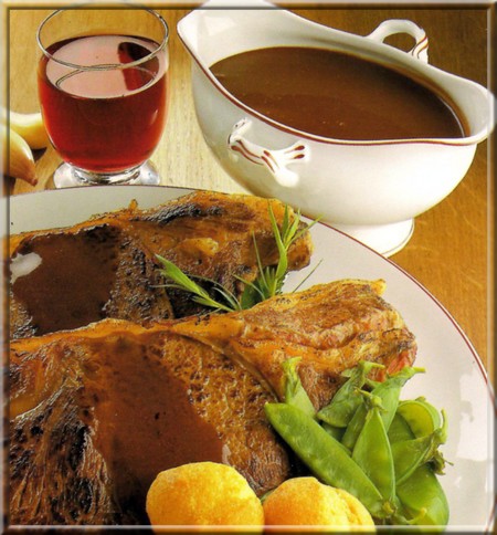 3.Filtrer la sauce réduite au chinois et, hors du feu, incorporer le beurre restant, en morceaux, en fouettant. En napper les entrecôtes. Servir immédiatement dans de grandes assiettes chaudes.